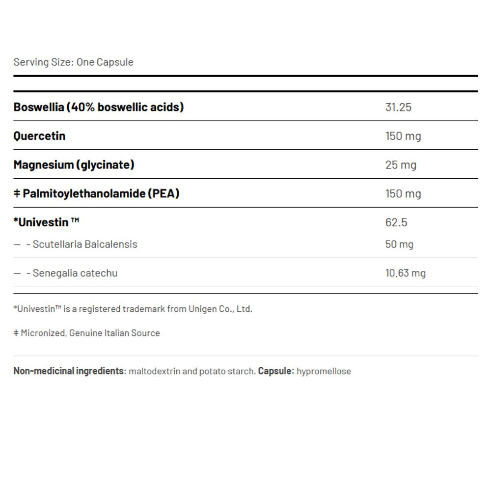 AOR - P.E.A.K Pain Reflief - 120 Capsule(s) - NPN: 80094703 -- P.E.A.k Pain Relief provides a well rounded approach for helping alleviate chronic pain and inflammation. Palmitoylethanolamide (PEA) has been studied for over 80 years for its potent anti-inflammatory properties. AORs formula combines PEA with Univestin, which has been clinically proven to provide relief from joint discomfort, and boswellia, which has been shown to help relieve joint pain and swelling associated with osteoarthritis. This innovative formula also includes quercetin and magnesium glycinate, which is critical for energy metabolism and muscle function.P.E.A.k Pain Relief is a revolutionary, comprehensive pain maintenance solution. This unique formula combines botanicals, flavonoids and minerals to address inflammation, muscle relaxation, the perception of pain.