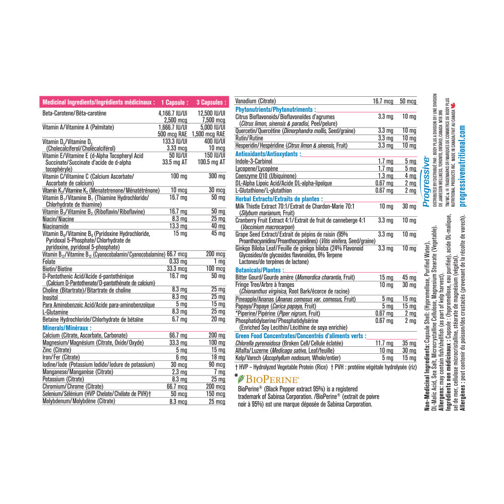 PROGRESSIVE - Multi Active Women - 60 Capsule(s) - NPN: 80036059 -- Progressive MultiVitamins for Active Women is designed for women on the go. Whether you exercise, work long hours, raise a family or any combination of the above, your body needs the support of an Active MultiVitamin formula.