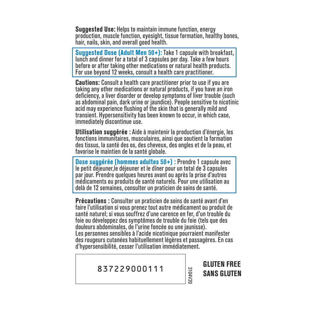 PROGRESSIVE - Multi Men 50+ - 60 Capsule(s) - NPN: 80036514 -- Progressive MultiVitamin Men 50+ is a unique formula designed to meet the specific needs for vitamins, minerals and other essential nutrients for men over 50. A 'one size fits all' Multivitamin Formula, taken once a day, cannot possibly satisfy all of your varied nutritional needs. Progressive knows the specific needs of each individual and has created 8 different formulas based on age. gender and activity level. Getting older is no reason to slow down. Progressive Multivitamins for Men 50+ addresses the needs of an againg body and helps you to stay youthful and active. Progressive MultiVitamin - Men 50+ is not simply another multi vitamin. It specifically meets the needs of men over 50.