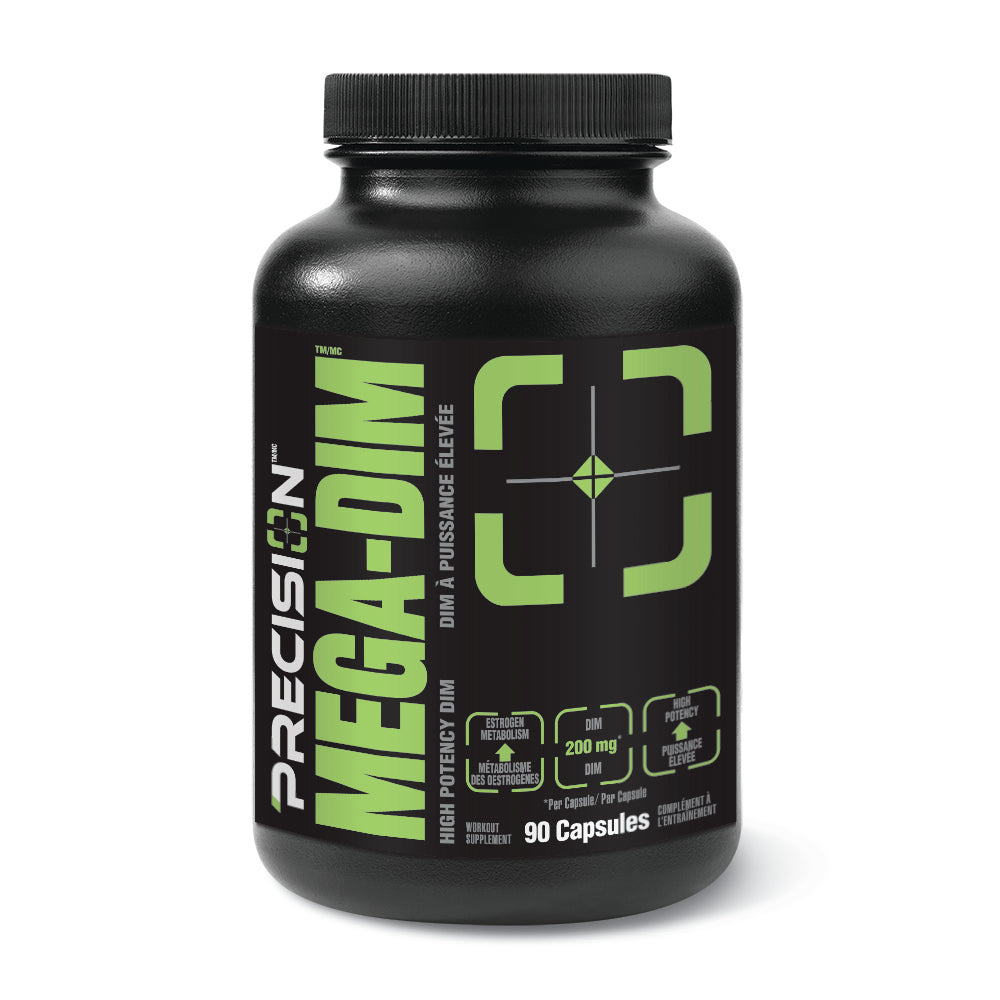 Not every athlete is one of the greats. But you? You are. To keep you on your throne, DIM helps you develop a healthy estrogen metabolism. Hit the gym knowing your bad estrogen is low, good estrogen high, and testosterone just right. If youre prepping for a fitness competition or simply aiming for the top, this is the right fuel for you.Precision's Mega-Dim is a high potency Diindolylmethane (DIM) product that has been formulated to provide hormonal support. Strengthened with black pepper to maximize absorption, Mega-Dim helps to maintain your estrogen levels while keeping optimal testosterone levels. Mega-Dim is an easy to take, once a day formula with no added fillers or banned substance