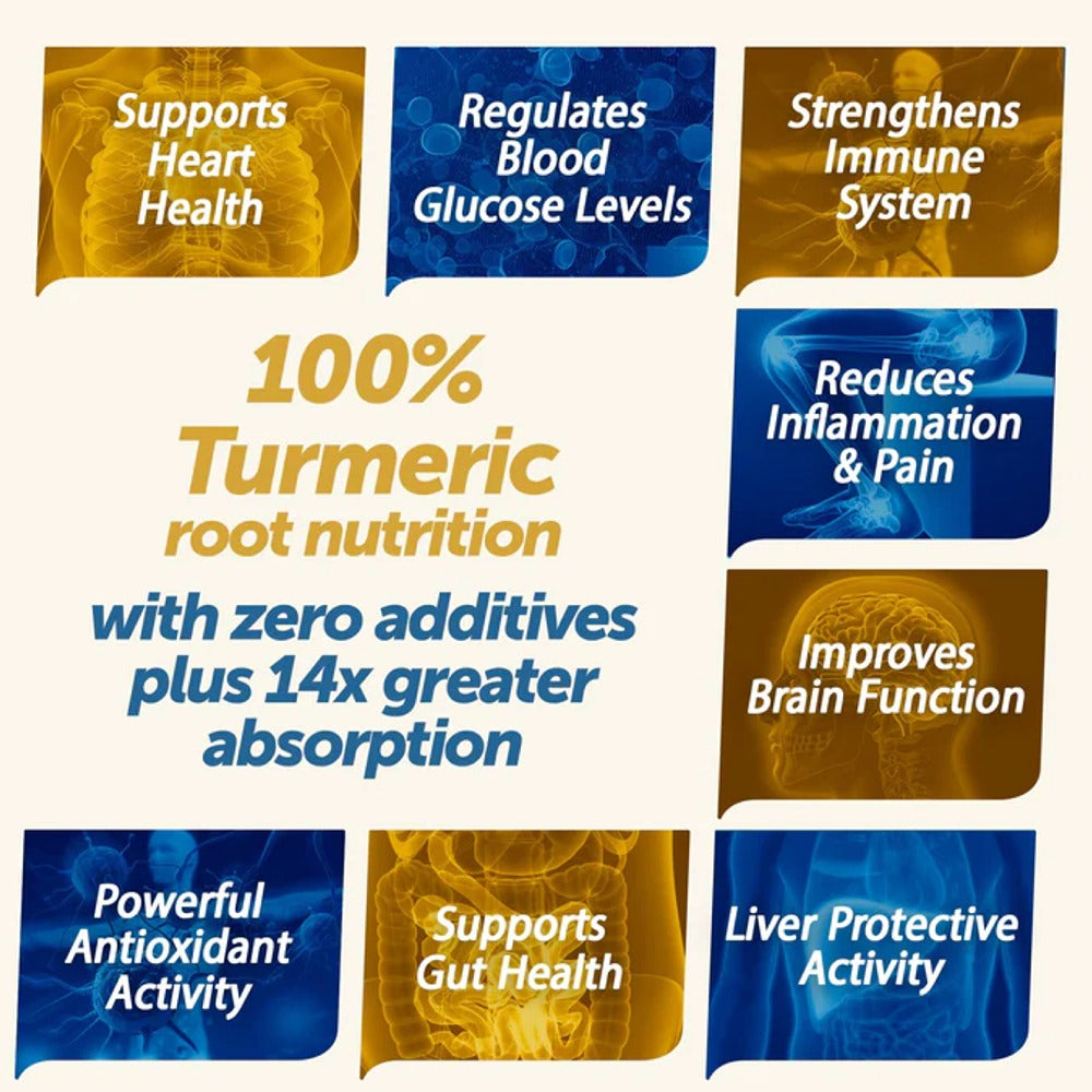 supplement to provide 100% turmeric root nutrition. A one of a kind turmeric supplements formula, our unique process extracts hundreds of nutrients from the turmeric root, in addition to curcumin. The result is a natural and advanced complex that delivers 45-50% curcuminoids and over 200 critical turmeric nutrients. These nutrients may work together to support healthy inflammation response, joint health, brain function, and overall wellness. Making our one of a kind anti-inflammatory supplement perfect for those who are looking for a natural way to improve their overall health and well-being.